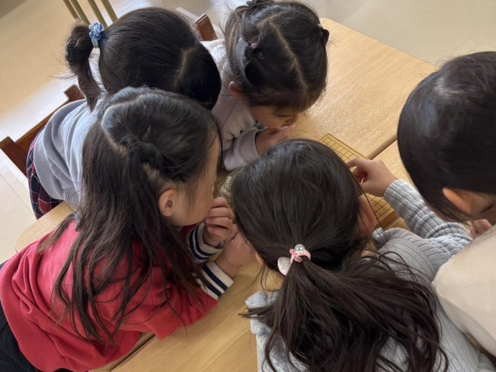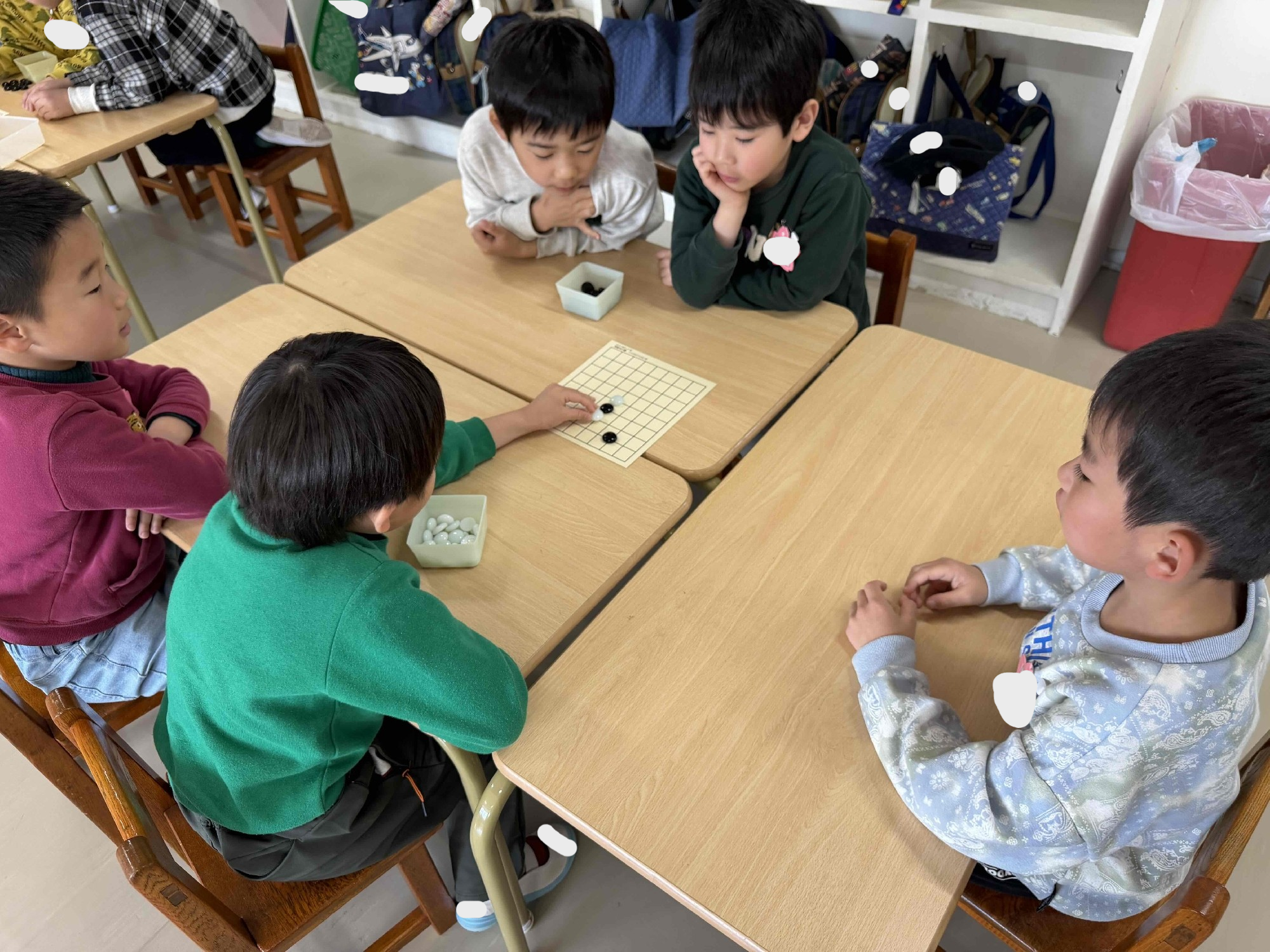 まずは、大きな囲碁セットを使ってみんなで実際にやりながら、ルールを知っていきました。