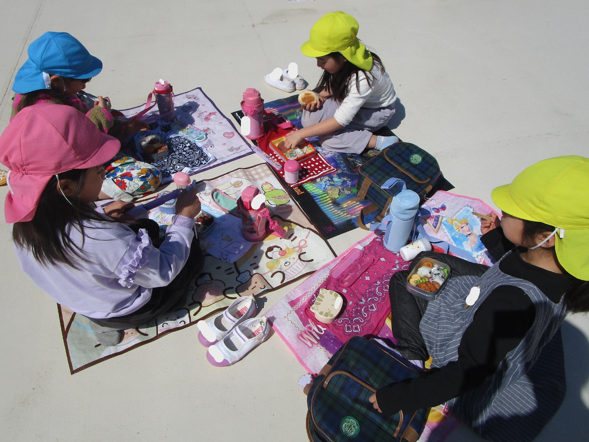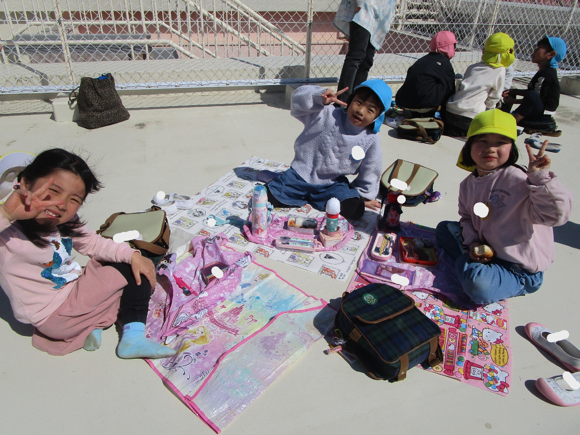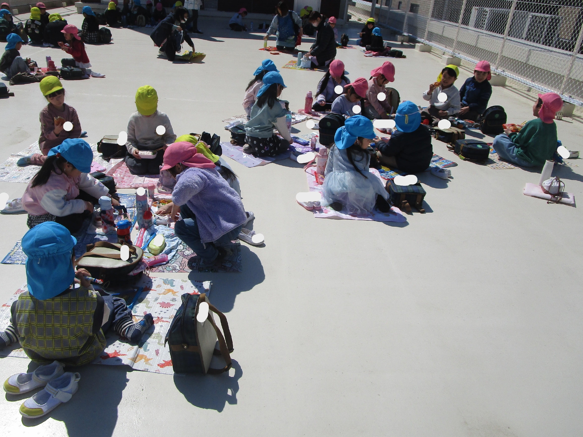 お天気に恵まれたので、屋上にレジャーシートを敷いて、学年のみんなでお弁当を食べましたよ😊
