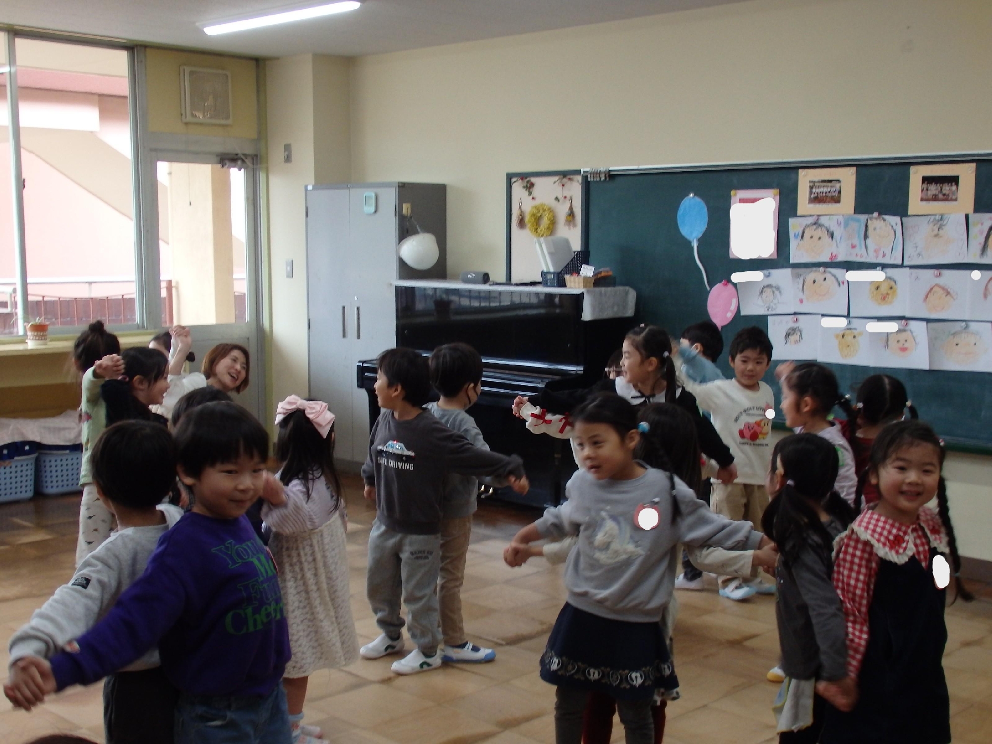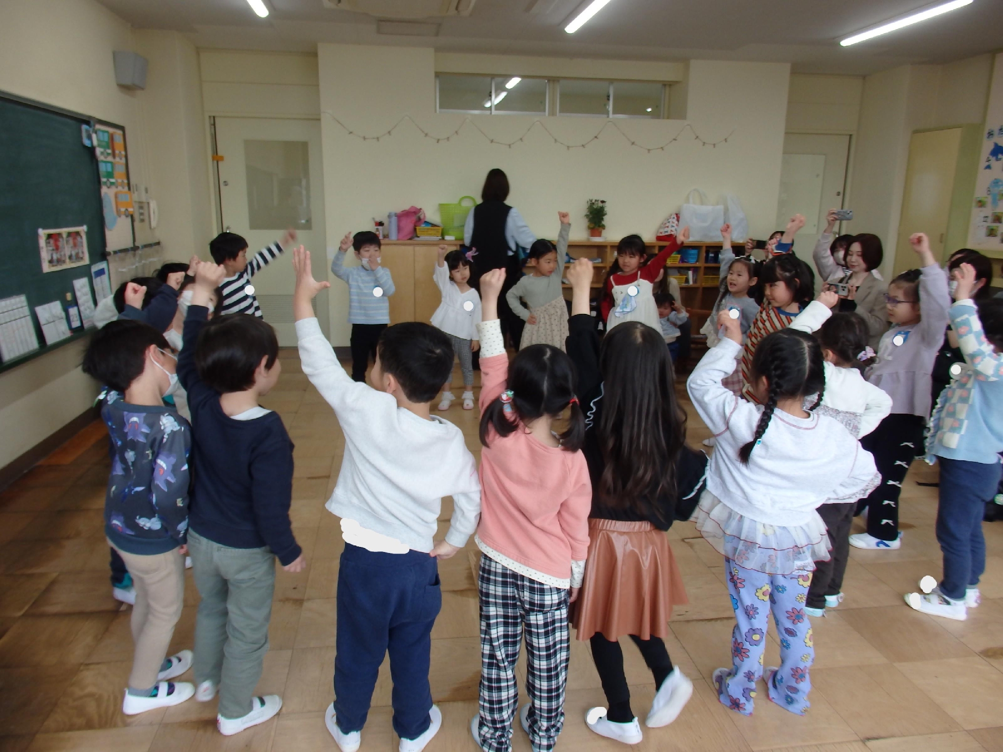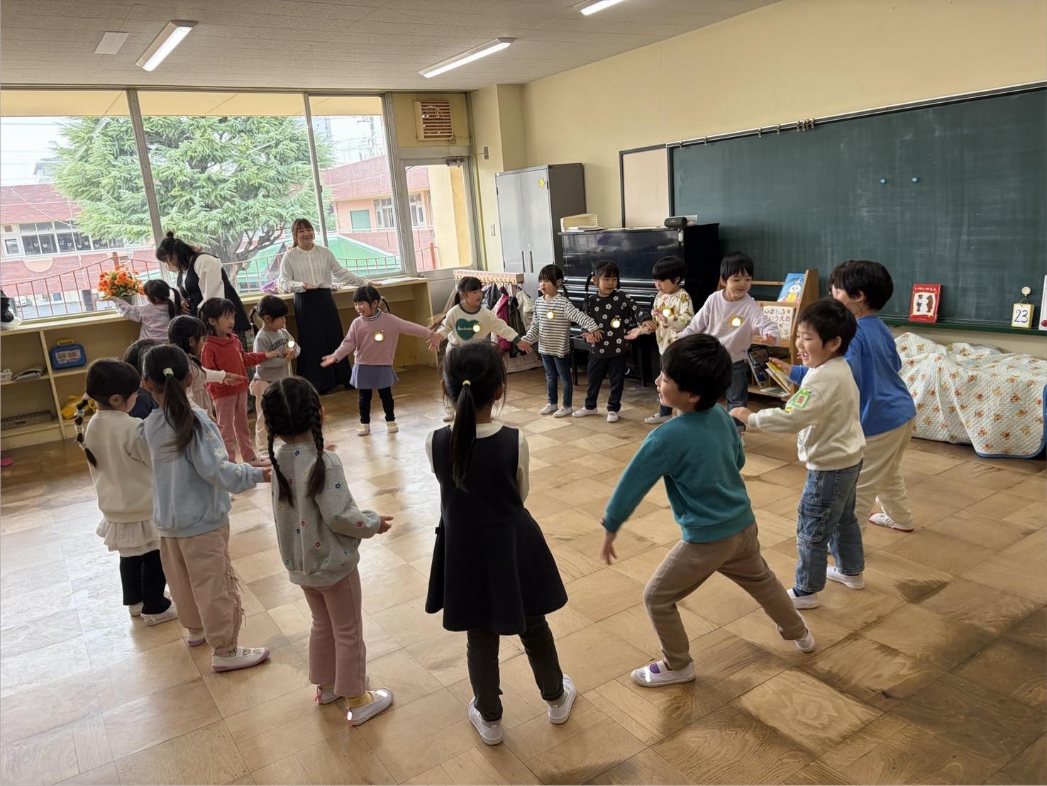 その後はクラスに戻り、歌やわらべうた、ダンスなどを行い、みんなで楽しい時間を過ごしました。