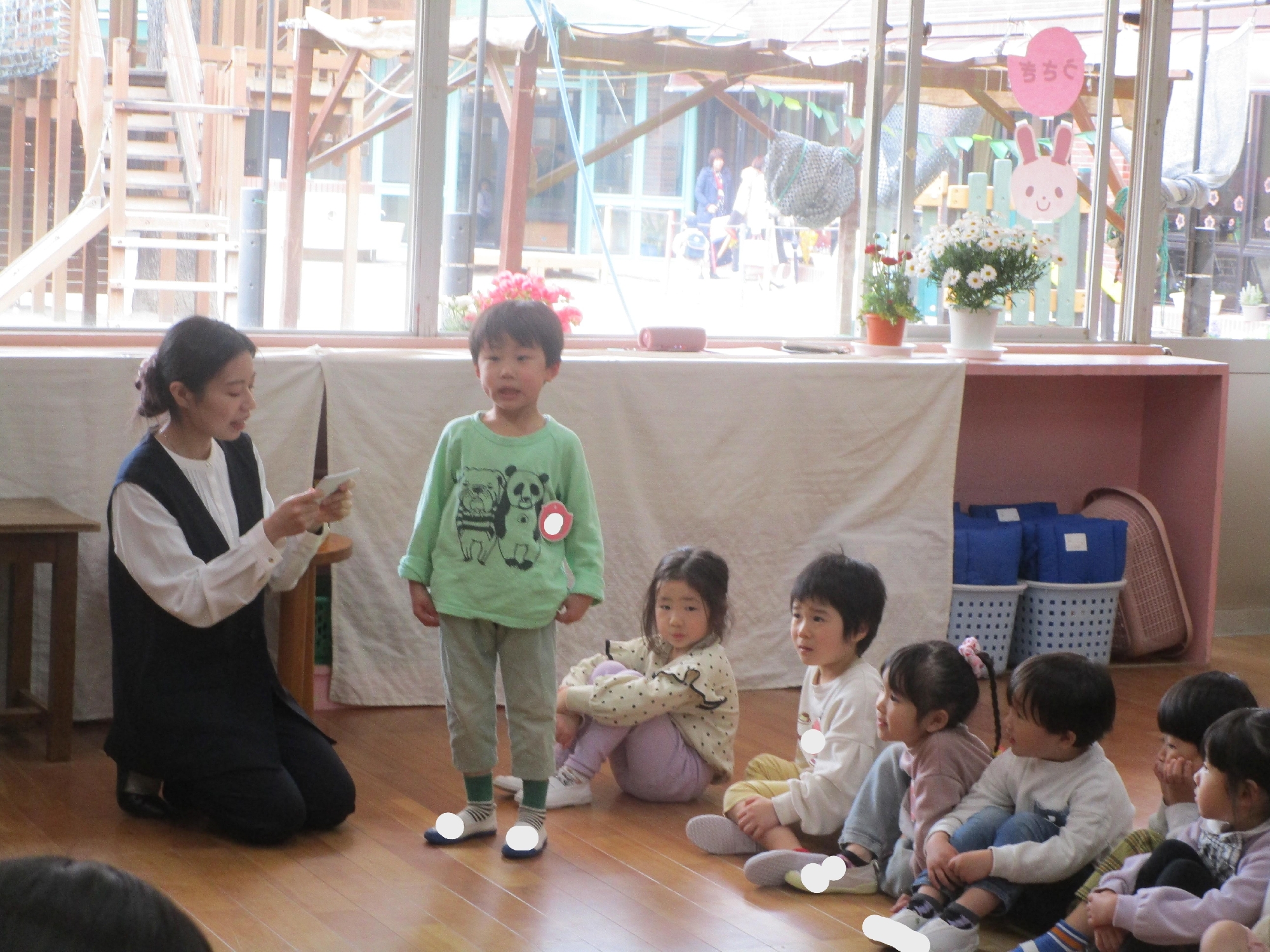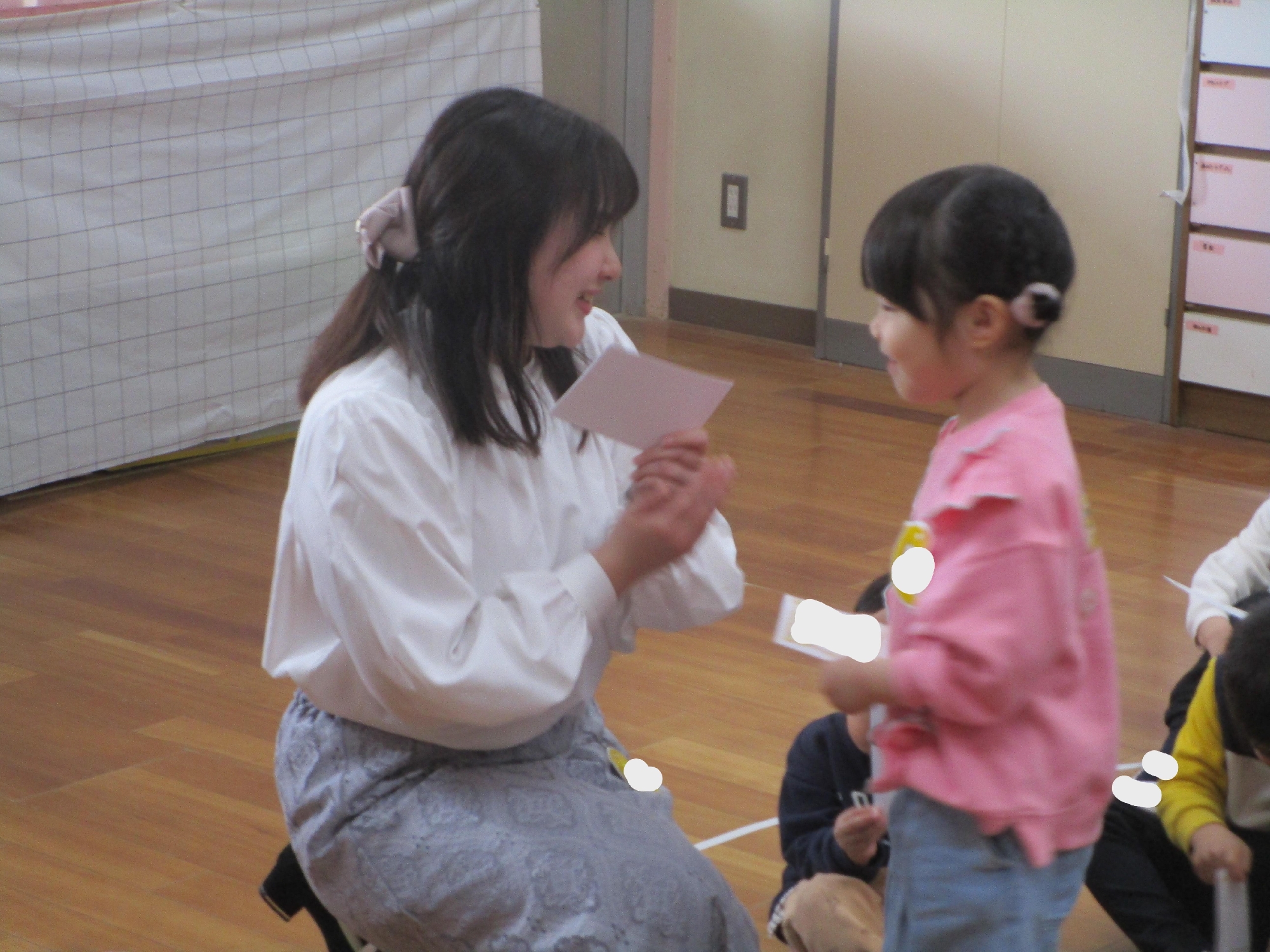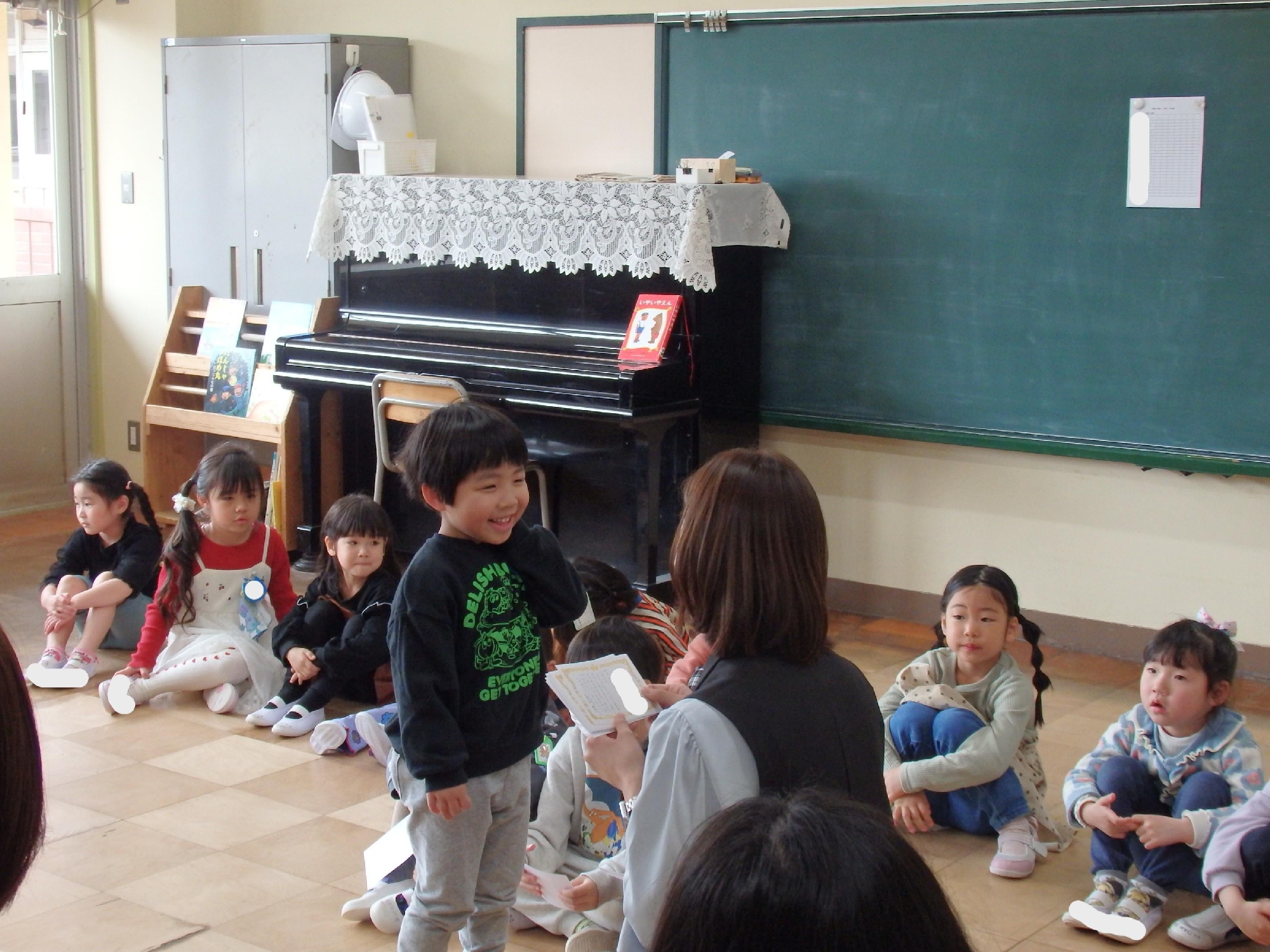 その後はクラスに戻り、歌やわらべうた、ダンスなどを行い、みんなで楽しい時間を過ごしました。